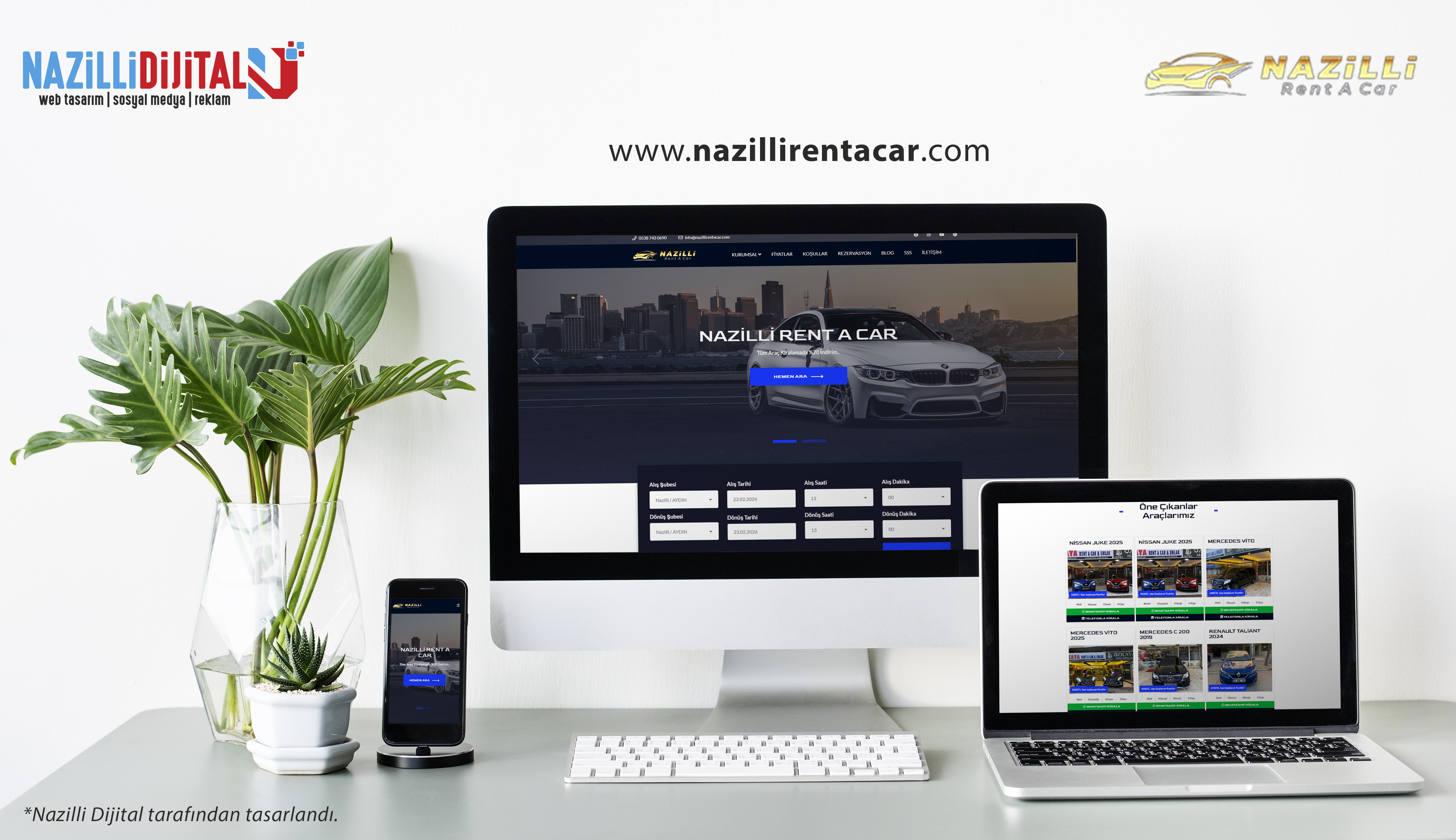Web sitesi; araç filosunun net ve sade bir yapıda sunulması, hızlı rezervasyon imkânı ve kolay iletişim seçenekleriyle müşteri dönüşümünü artıracak şekilde kurgulanmıştır. Yerel SEO altyapısı sayesinde Nazilli ve çevresinde arama sonuçlarında görünürlük hedeflenmiştir.
