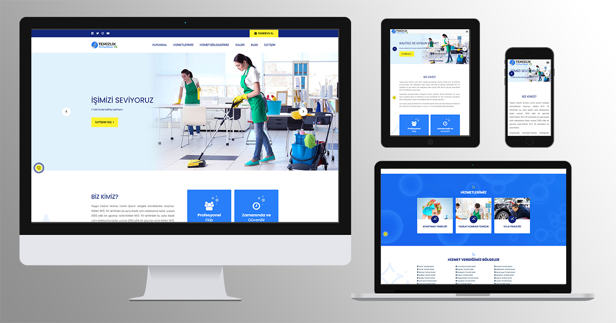 Temizlik Firması Web Sitesi Scripti; profesyonel temizlik şirketleri, bireysel temizlik hizmeti sunan firmalar ve kurumsal temizlik organizasyonları için özel olarak geliştirilmiş, tamamen yönetilebilir bir web sitesi çözümüdür.
